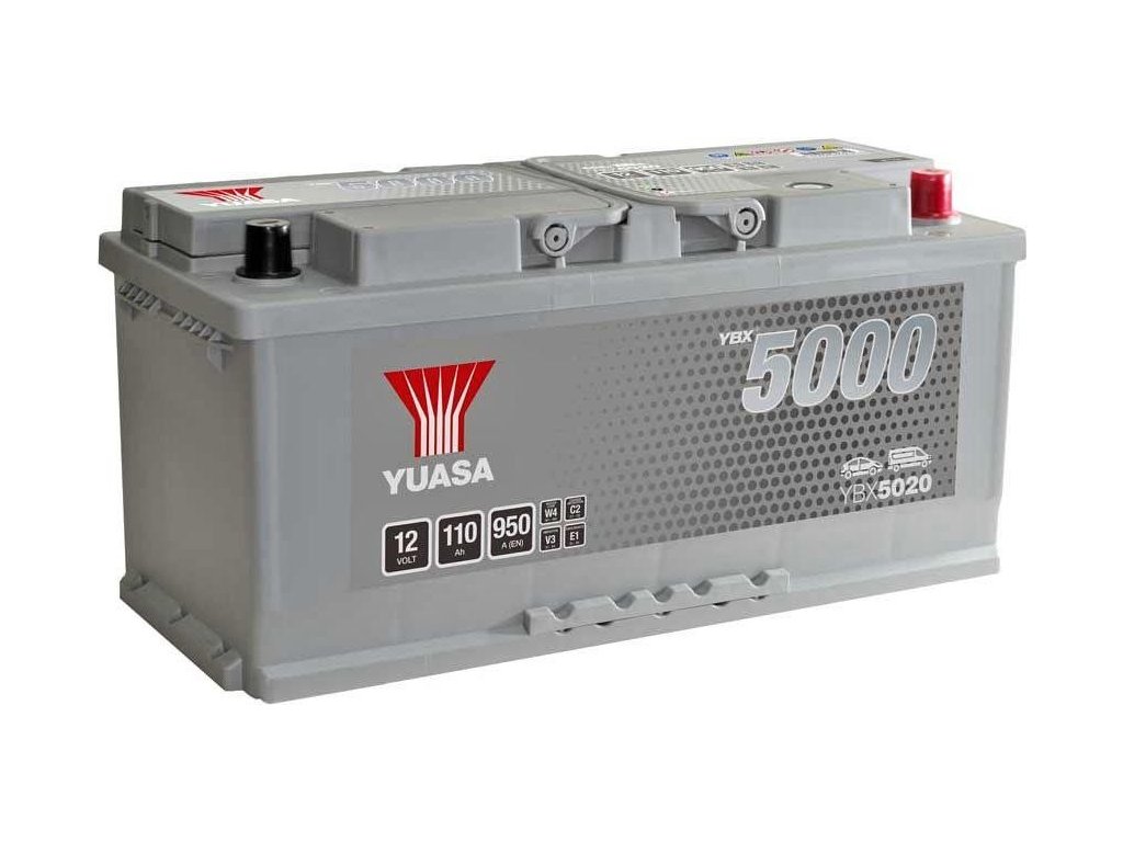 YBX5020 12V 110Ah 950A(EN1) karbantartást nem igénylő YUASA autóakkumulátor. Importőre a MICRONIX Hungary Kft..
