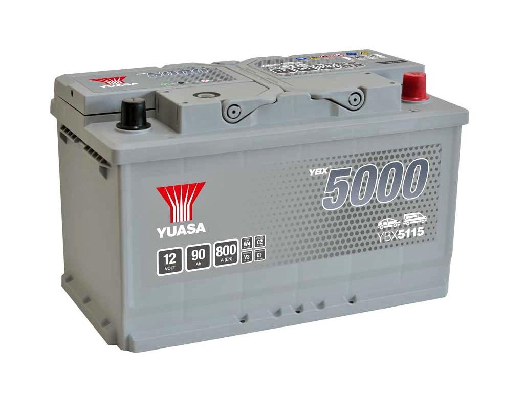 YBX5115 12V 90Ah 800A(EN1) karbantartást nem igénylő YUASA autóakkumulátor. Importőre a MICRONIX Hungary Kft..