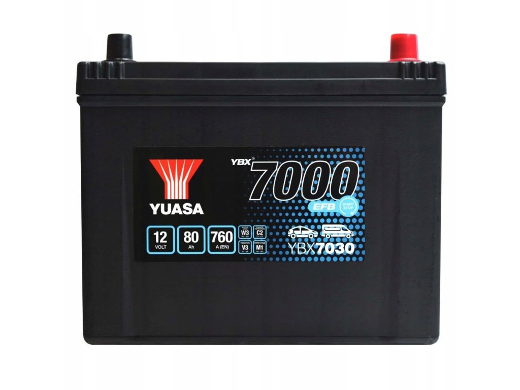 YBX7030 12V 80Ah 760A(EN1) karbantartást nem igénylő YUASA autóakkumulátor. Importőre a MICRONIX Hungary Kft..