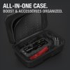A Noco GBC102 EVA védőtáska a Noco GBX55 UltraSafe lítiumos indításrásegítőkhöz tartós és strapabíró, félmerev, egyedi külsővel, cipzáras záródással és megerősített fogantyúval rendelkezik. A gumírozott EVA külső védelmet nyújt a nedvességtől, ütődésektől, portól és egyéb környezeti tényezőktől, míg a formázott belső rész tökéletesen illeszkedik, tárolja és védi a hozzá tartozó NOCO Boost X UltraSafe indításrásegítőt - a GBX45 külön megvásárolható, nem tartozéka a csomagnak. A GBC102 tok további zsebekkel rendelkezik a kapcsolódó Boost tartozékok szállítására, tárolására. A védőtáskát könnyedén tárolhatja a csomagtartóban, járművében vagy garázsában.
