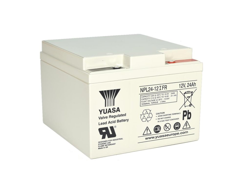 NPL24-12IFR 12V/24Ah - tartalék áramforrás, gondozásmentes, VRLA, teljesen zárt YUASA márkájú zselés akkumulátor. AGM technológia. Szünetmentesekhez, riasztókhoz, tűzvédelmi eszközökhöz. Importőre a MICRONIX Hungary k.f.t..